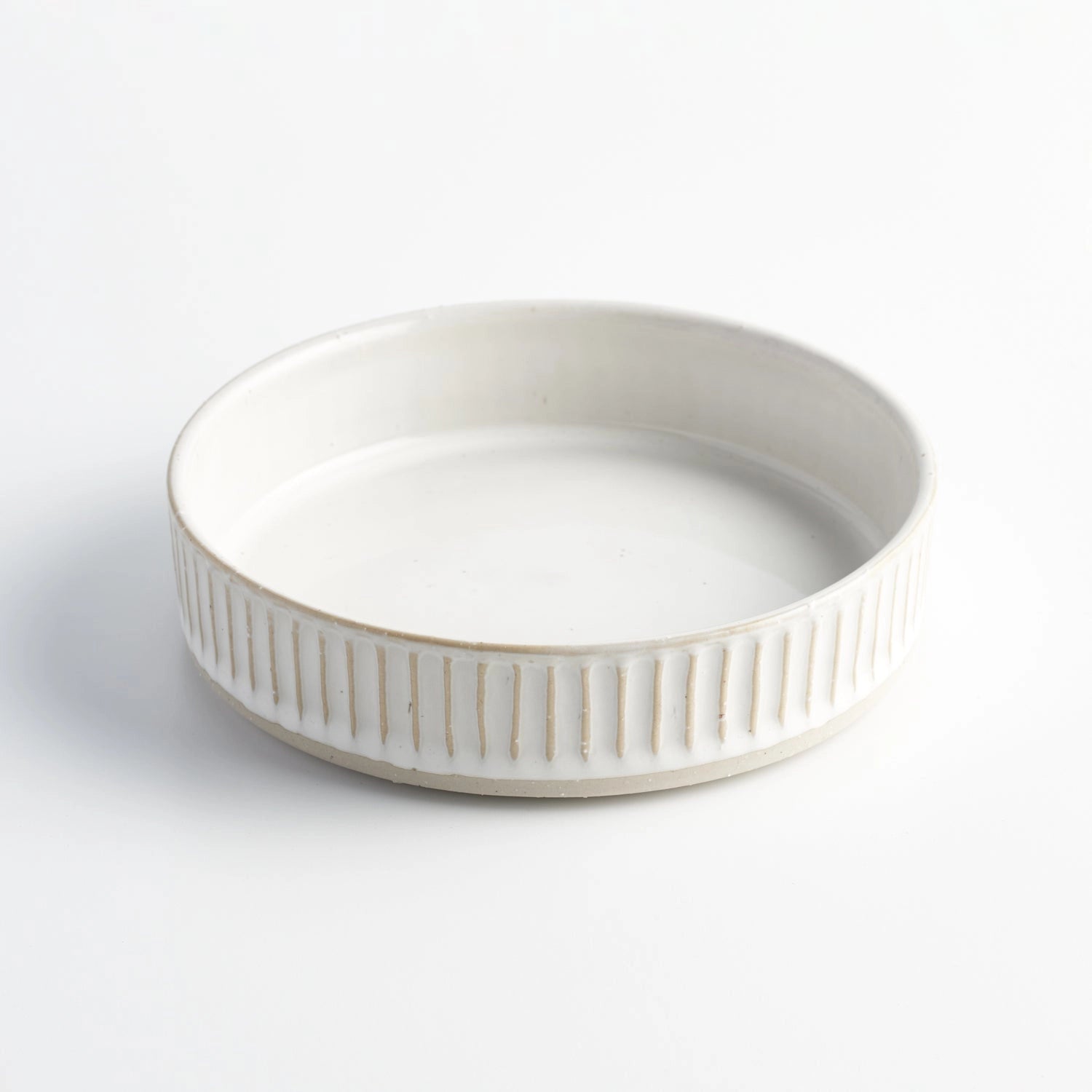 ANIMALS IN CHARGE DOG FOOD BOWL - WHITE SCALLOPED STONEWARE