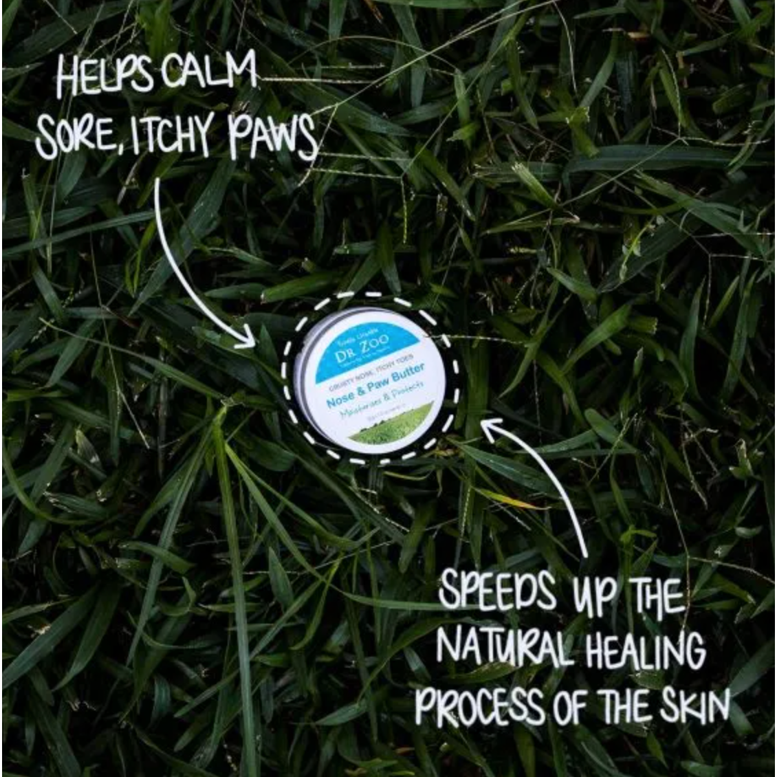 Paw pads can become dry and cracked from hot or cold concrete, or can become itchy from a variety of natural elements. We use Shea Butter and Hemp Seed Oil, which will moisturise your pet’s nose, especially on cold days, and will have their paw pads ready for roaming the streets again.