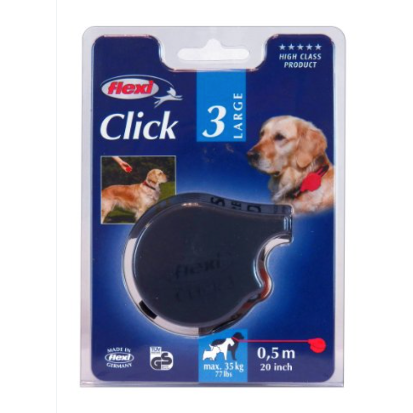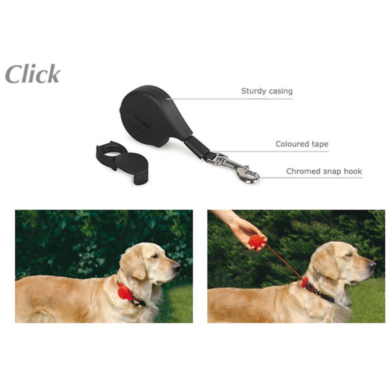 The handle of this retractable leash attaches directly to your dog's collar. It is easily detached with the quick-release button for instant control of your dog. The Click is 50.8cm long.