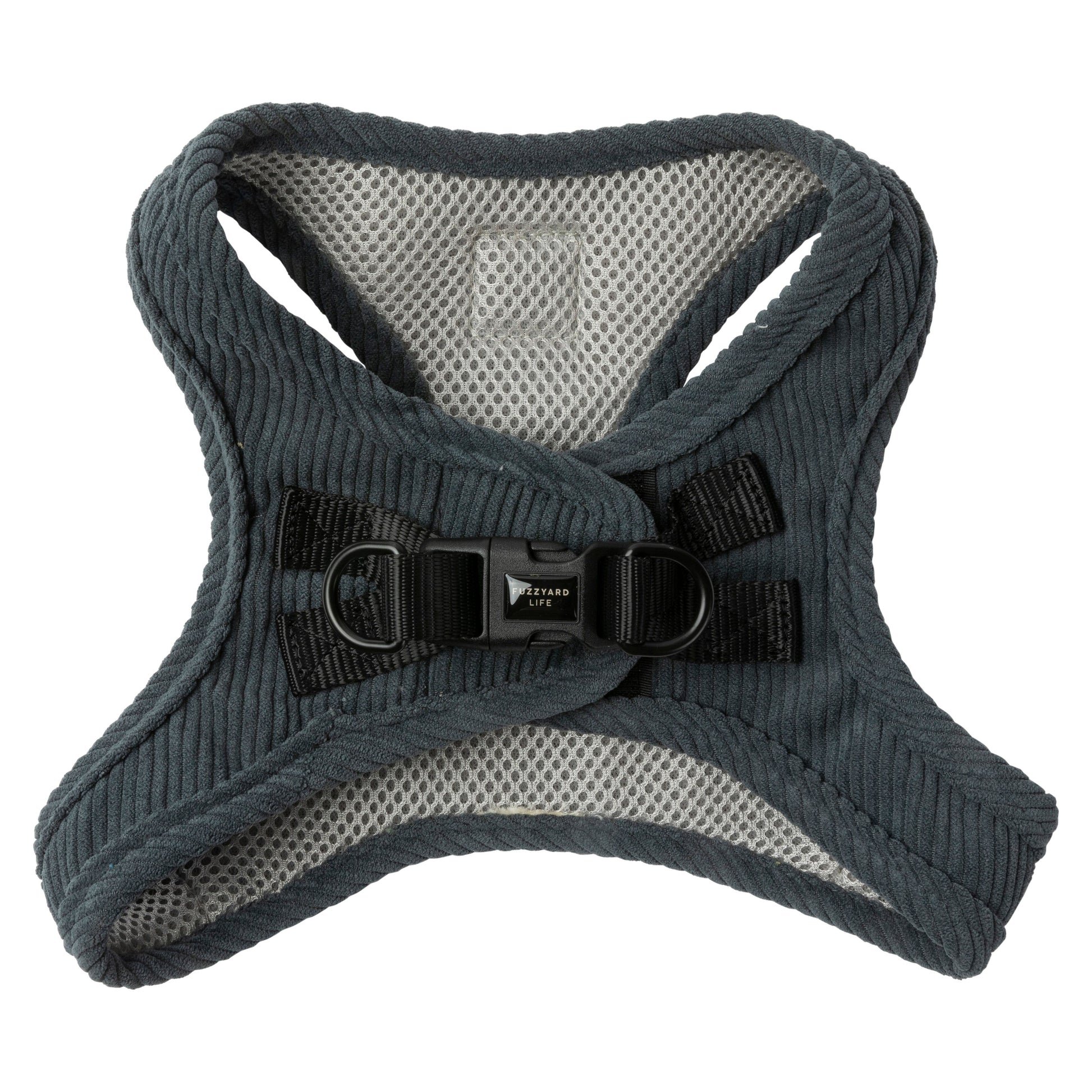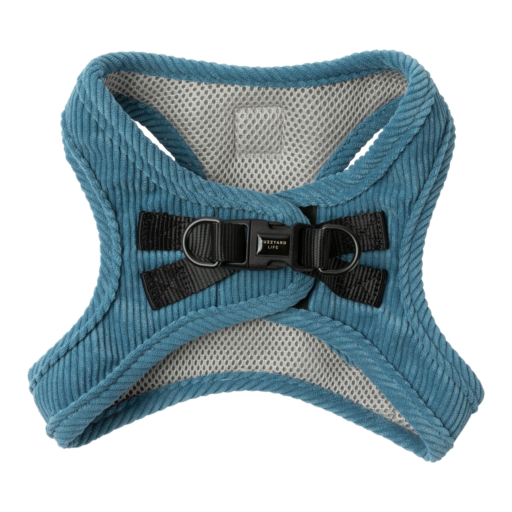 Our practical step-in harness is crafted from beautiful textured corduroy and features interior padding made from a breathable mesh. This lightweight design is not only easy to use and great for dogs that are head shy, but it is also well suited to breeds with a larger head or neck.