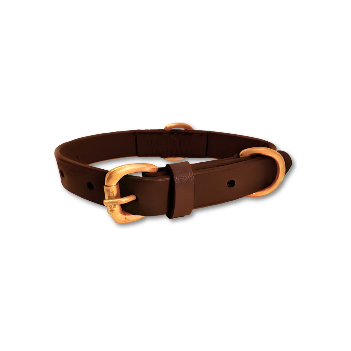 The Bald Collar is a classic, well-rounded, no-frills collar in fabulous buffalo leather colours. Beautifully hand-made with antique brass hardware to withstand elements, time and sunshine.