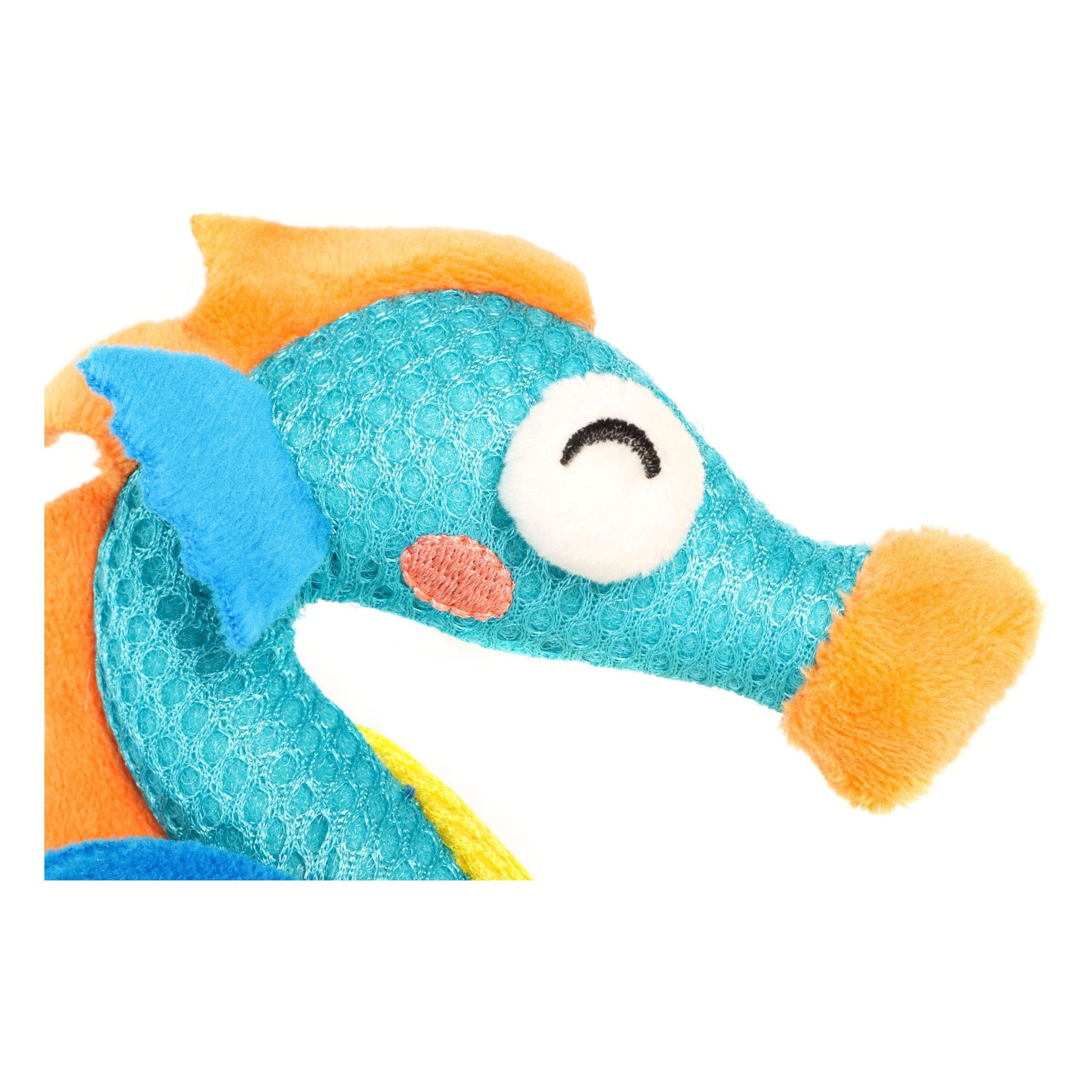 Help keep your precious cats teeth clean with the fun GiGwi Dental Mesh Seahorse toy. These cat chew toys are made with a specially formulated mesh material that helps to improve your cats dental health by providing a flossing and cleaning action to their teeth and gums while your cat chews. Cats have a natural instinct to bat and pounce and the GiGwi Dental Mesh cat chew toy is lightweight enough for kitty to bat and swat, and perfect for tossing to engage in a playful pounce. Great for play and pampering, this cute cat chew toy also contains catnip to engage your cat during playtime and offer a fun way to improve and maintain their dental health.
