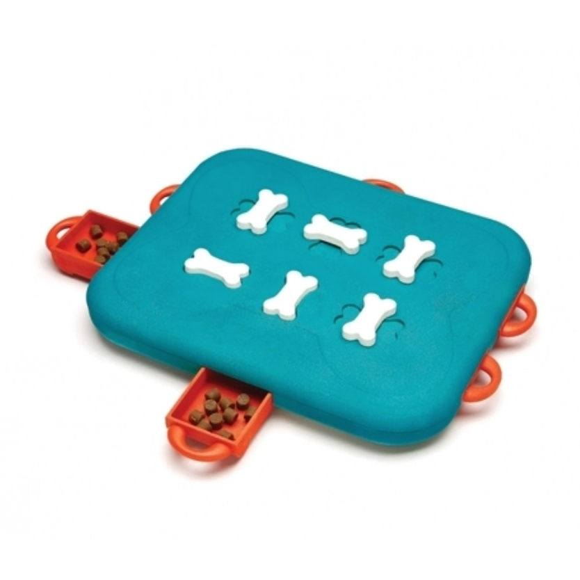 HOW TO PLAY: With bones in unlocked position, open drawers and drop in treats or kibble. Close drawers and lock bones. Let the games begin! Place the game on the floor and encourage your pet to seek treats. Dogs are smarter than you think. Sometimes we just need to teach them! Leave bones unlocked and a drawer or two open to gain your dog´s interest.