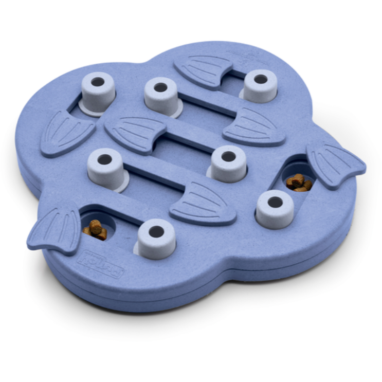 The Hide N’ Slide features 7 hidden treat cavities that are concealed with the swiveling fish fins or sliding blocks on the board.