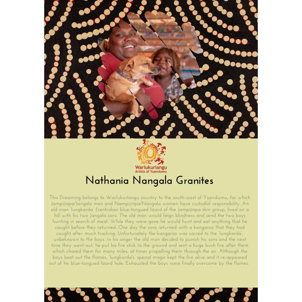 Fire Country Dreaming: Finished with beautiful, Indigenous artwork by Nathania Nangala Granites of the Warlukurlangu Artist Aboriginal Corporation in the Central Desert region of Australia.