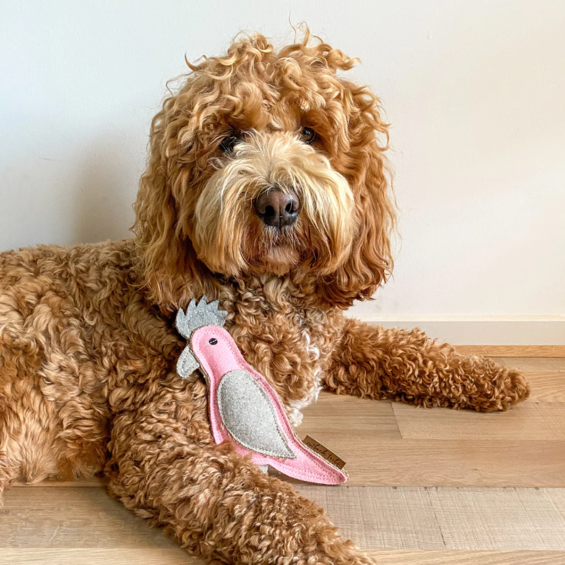 These adorable felt dog toys are made from natural wool felt and double-stitched for strength. Stuffed with sustainable, natural jute with a hidden squeaker.