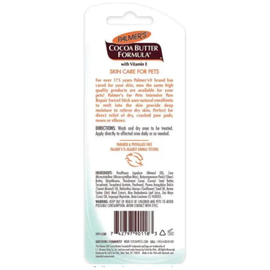 • PALMERS COCOA BUTTER INTENSIVE DOG BALM – Now pets can enjoy the skin soothing quality of Palmer's Cocoa Butter with their very own dog balm swivel stick for dog pads
