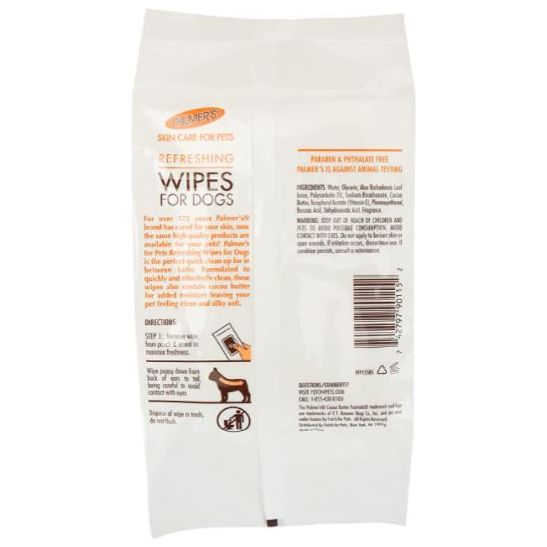 • These dog wipes for dogs from Palmers are made with cocoa butter and vitamin E to keep your dog's skin and coat smooth, soft, and clean .