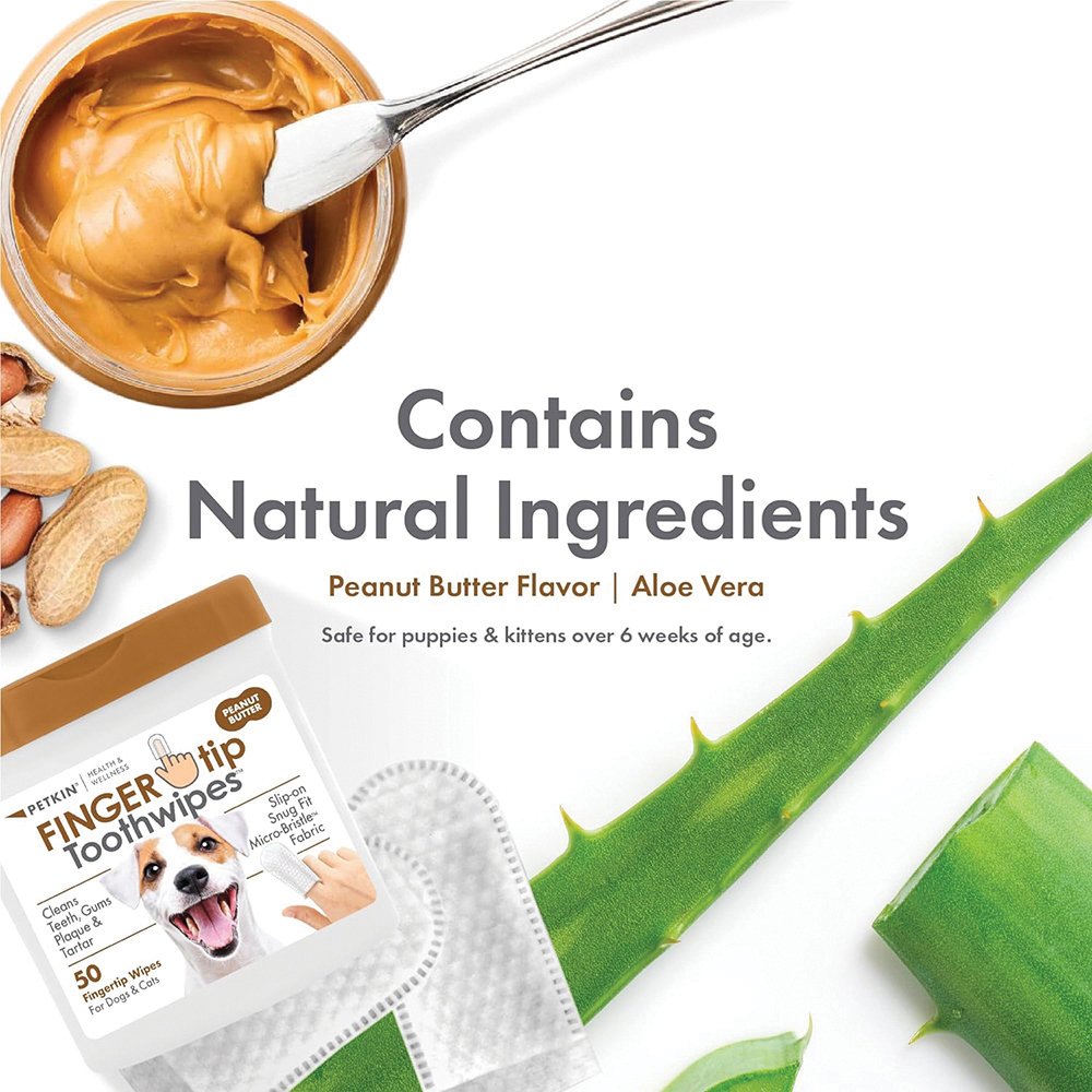 PETKIN FINGERTIP TOOTH WIPES PEANUT BUTTER FLAVOUR 50PK