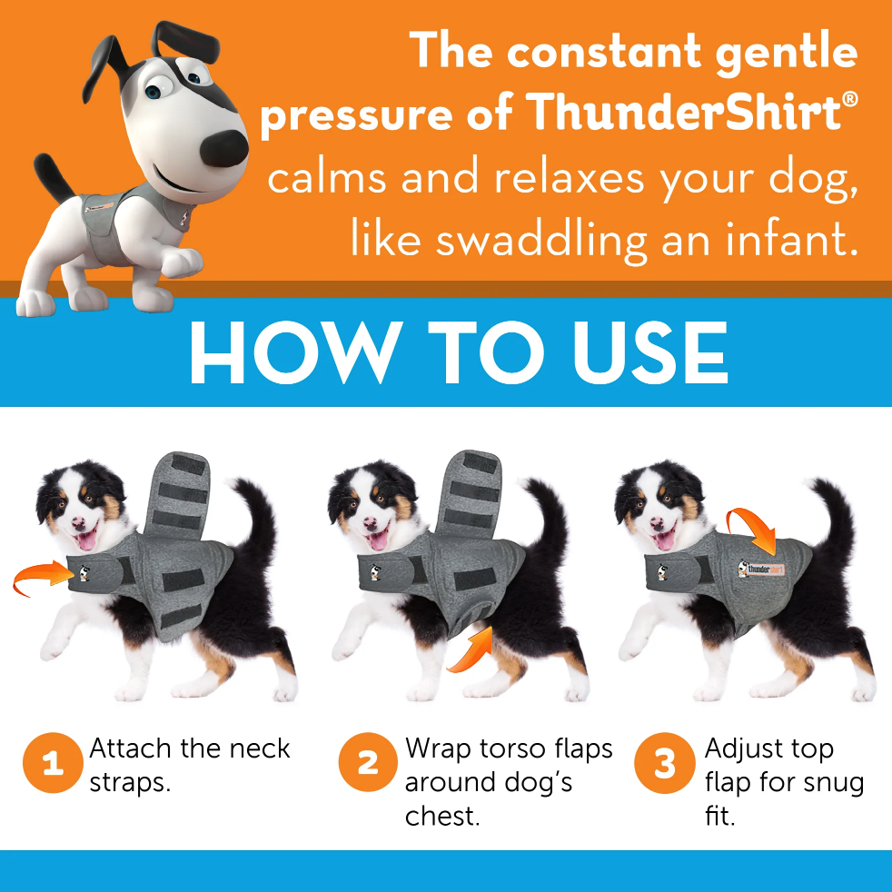 ThunderShirt is the original, vet recommended, natural calming solution that may reduce anxiety in dogs in a drug-free way. Like swaddling an infant, our dog anxiety vest's patented design applies gentle, constant pressure to calm all types of anxiety, fear, and over-excitement issues in dogs.