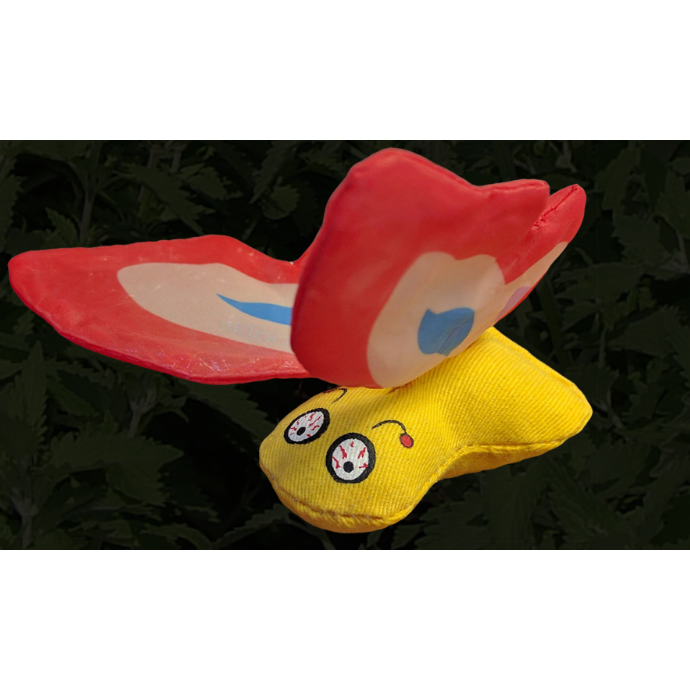 Bright colors, crinkly wings, and 100% stuffed with pungent, organically grown catnip makes this the perfect toy for your cat to pounce and play with!